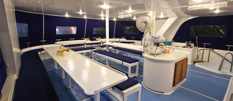 There is plenty of space to enjoy the time in between dives in the air conditioned saloon, the open dining area, the captains balcony or on the large sun and shade deck.